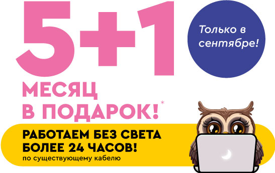 При оплате в офисе пяти месяцев Интернета и Телевидения шестой будет в подарок.