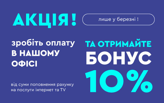 При оплаті в офисе получите бонус на счет +10% от суммы пополнения.